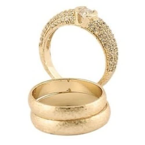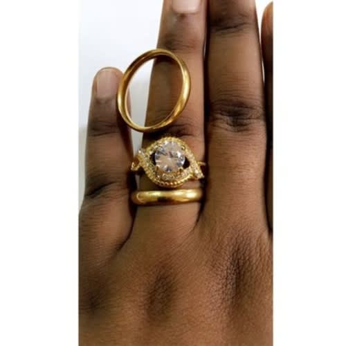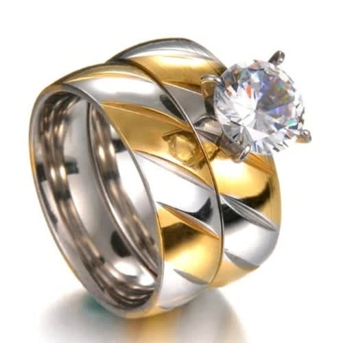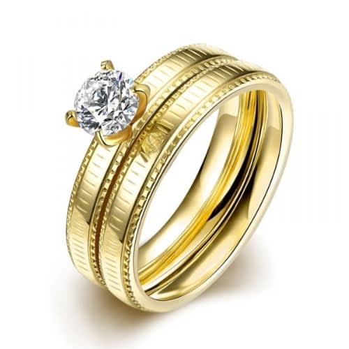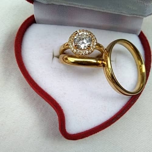 High quality and durable engagement ring specially designed for women to crown and seal that special day, made of 18k gold plated stainless steel with a clear cubic zirconia that sparkles.