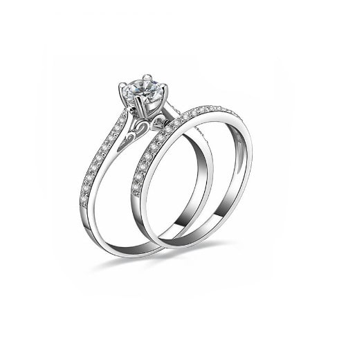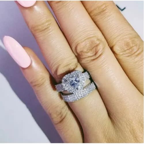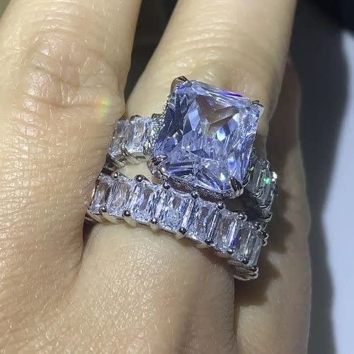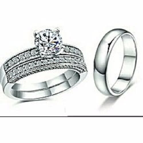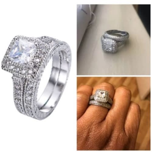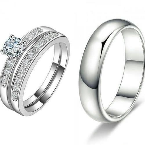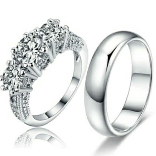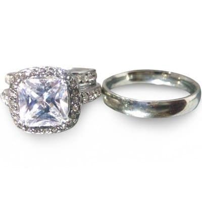 Step into the new life in this bold statement sterling silver wedding ring set. made of solid non tarnish sterling silver and cubic zirconia stones. 2 piece female only set.bold and classy.
