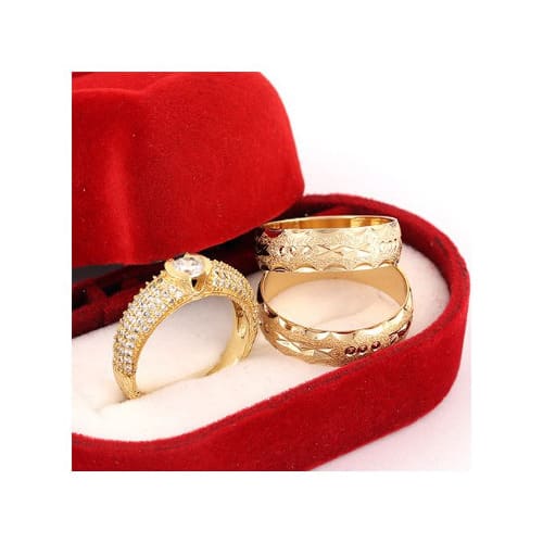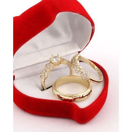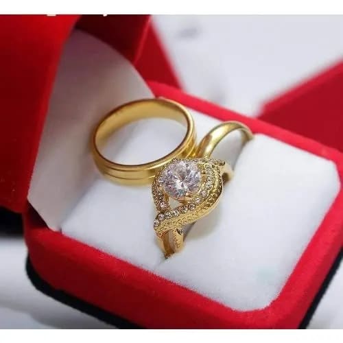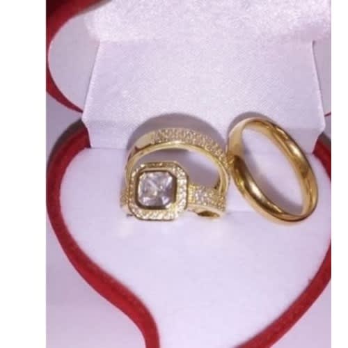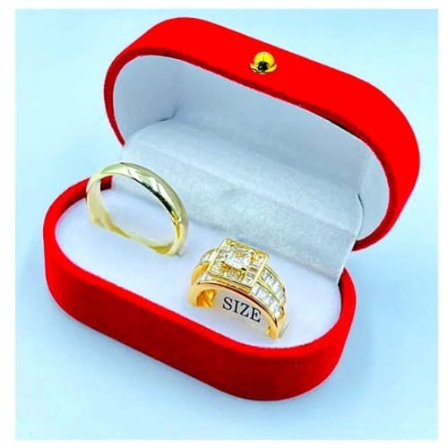 Adorn yourself or your significant other with this masterfully crafted Gold plated Wedding ring set, ornamented with a beautiful and shimmering Square cubic zirconia Crystal. Excellent for engagement/wedding, anniversaries, party and as a special gift.