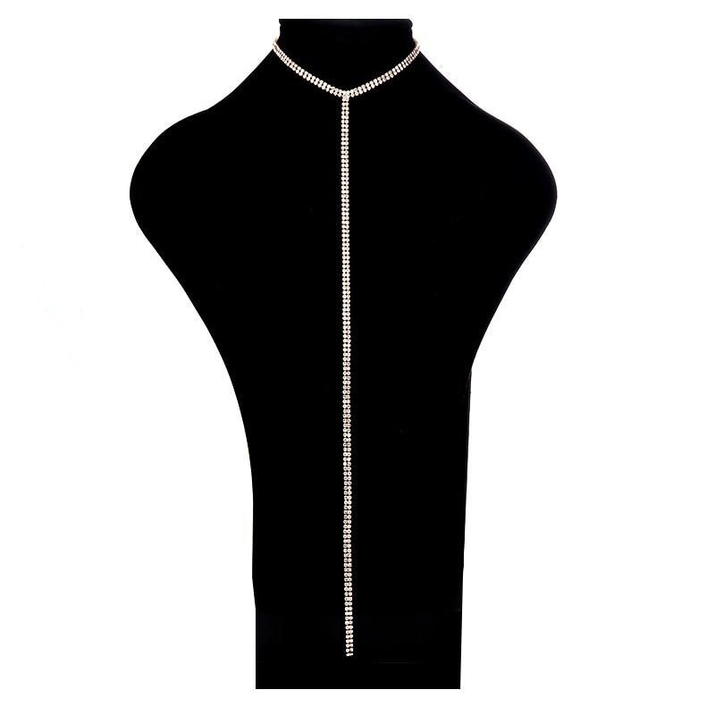 Fashion Full Rhinestone Chain Necklace For Women Statement Long Tassel Choker Crystal Collar Party Jewelry Neck Accessories