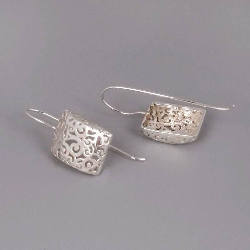 Buy Fashion Geometric Hollow Pendant Earrings Fashionable Metal Silver Color Plating Carving Patterns Party Wedding Earrings Jewelry in Nigeria