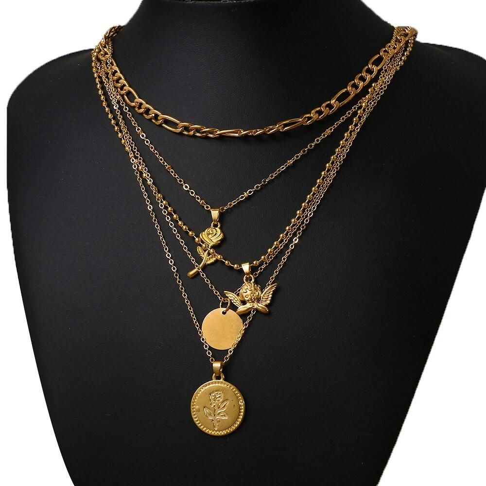 Buy Fashion Multilayer Butterfly Gun LOVE Choker Necklace Female Geometric Thick Chain Butterfly Metal Pendant Necklace Jewelry Gift in Nigeria