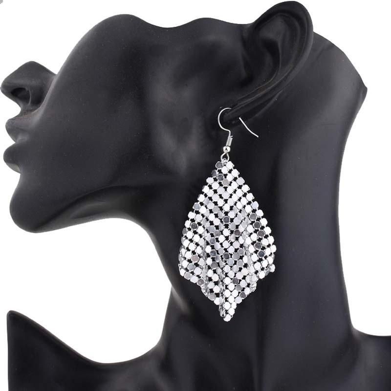 Features: Long Drop, Hook Earrings, Sequins Mesh Dangle