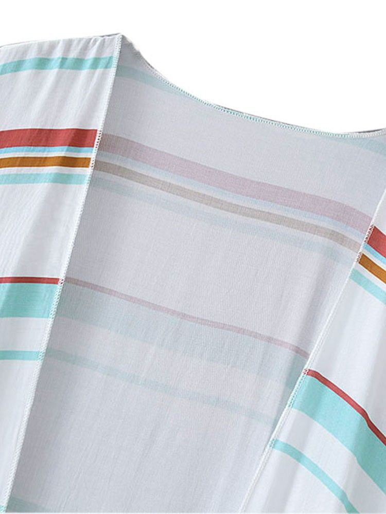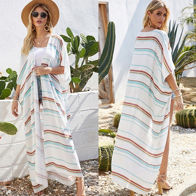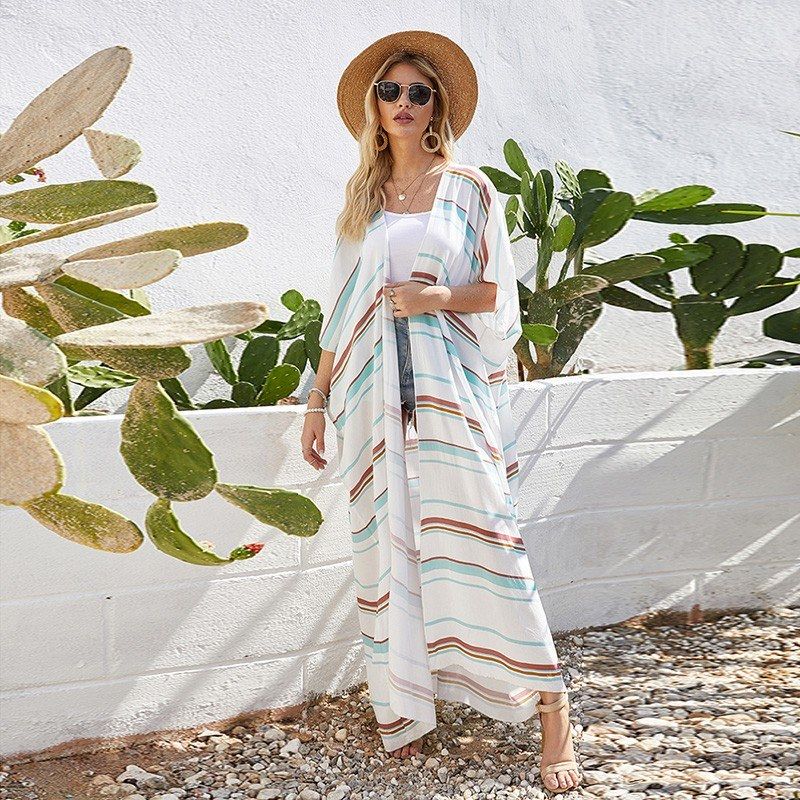Long cardigan with stripe print features half flare sleeves, which is rather comfortable to wear. When you are going to the beach, it would be nice to wear it as sunscreen.