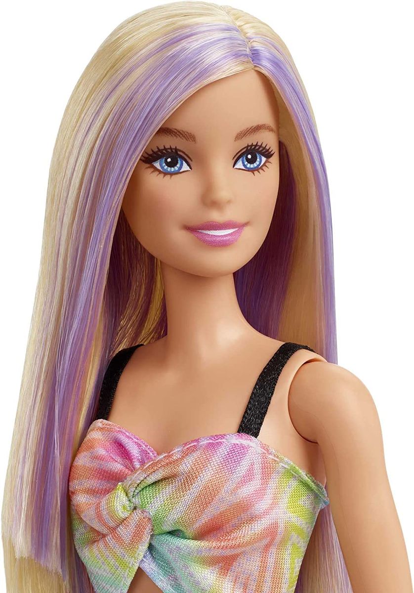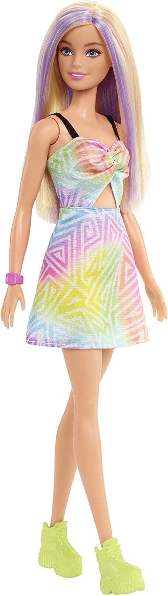 Barbie Fashionistas Doll #190, Blonde Hair with Purple Streaks, Romper Dress, Yellow Wedge Sneakers, Bracelet