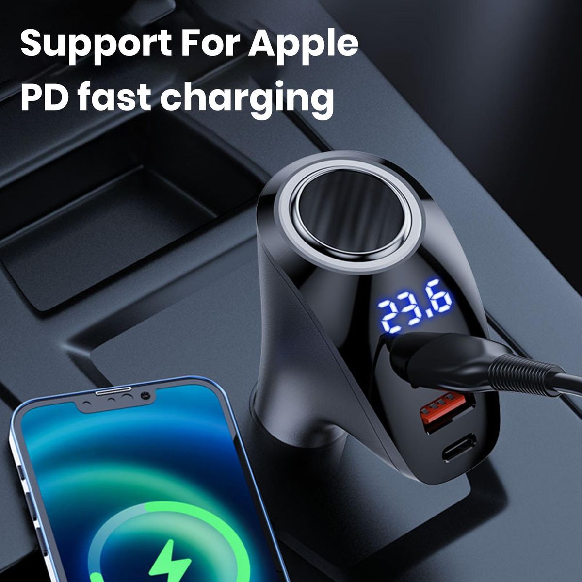 Our upgraded car charger, the perfect companion for your on-the-go charging needs. with its fast and efficient pd charging capabilities, you can now power up your devices up to 50 in just 30 minutes, ensuring that you never run out of battery during your travels.