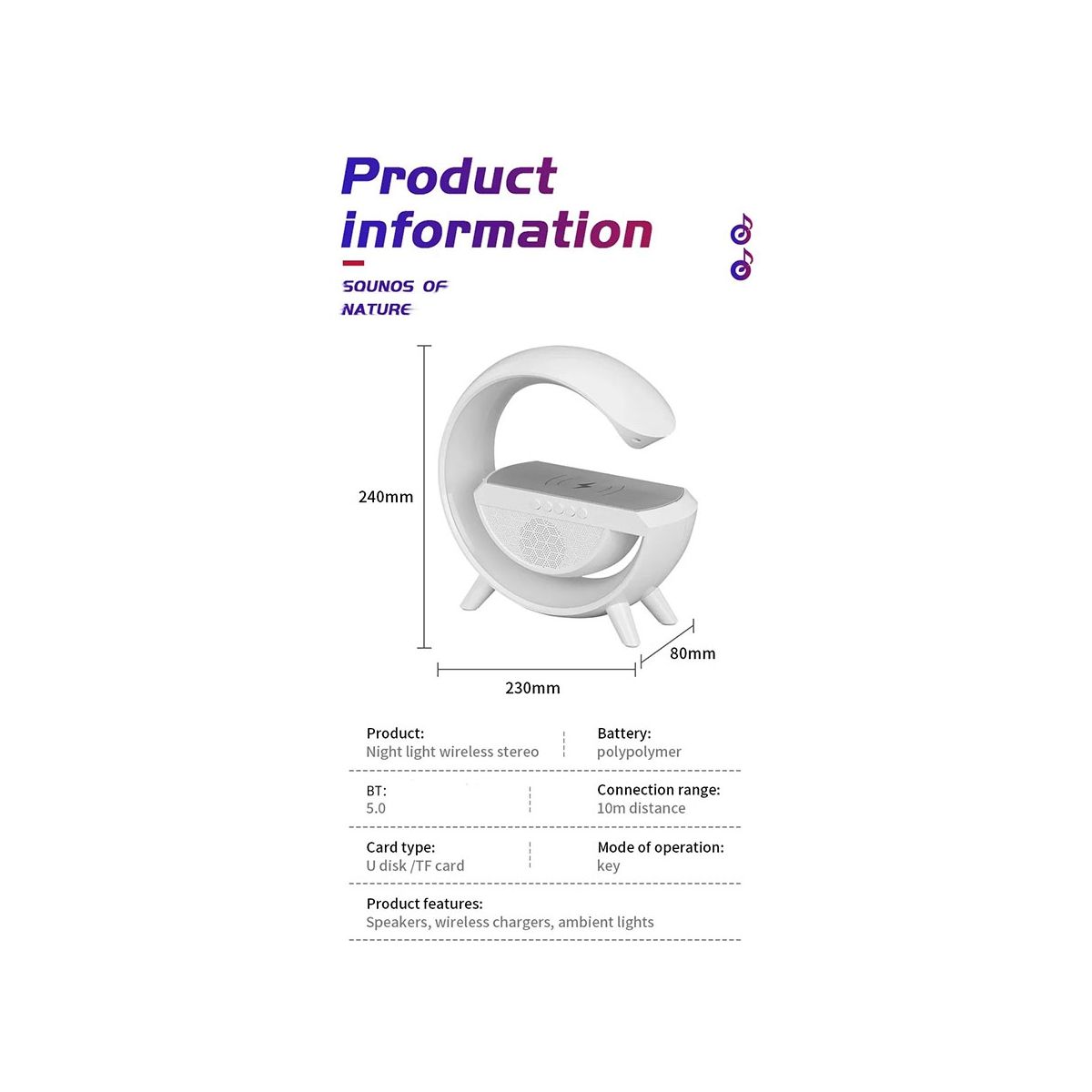 10W wireless charging, atmosphere lamp, bedside lamp,