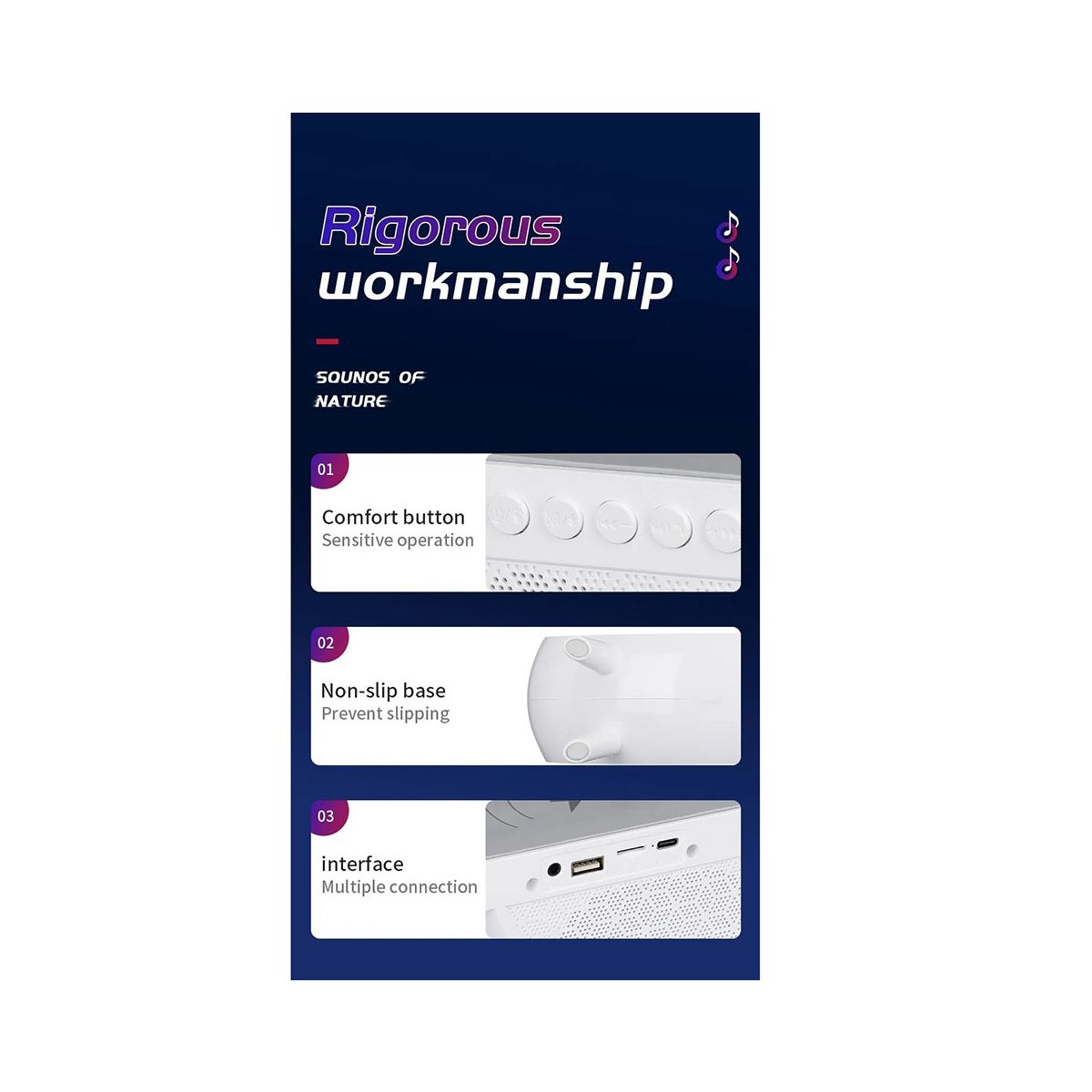 dazzling light effect, Bluetooth audio, speaker play and Aux, TF, U Disk, FM, TWS (this fuction only work on Bluetooth mode )mode