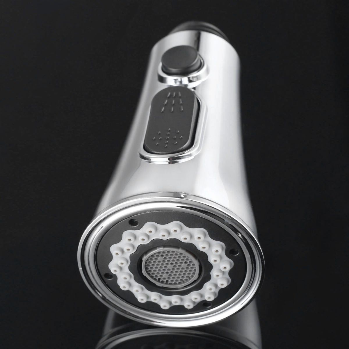 100% . The extremely robust and water-resistant. Replacement or spare spout head for kitchen sink mixer tap. Push on for 2 spray settings: rain and bubblin. ABS plastic materials and plating finish. Universal 1/2"" connection for attaching to the flexible pull out hose of a pull out spout kitchen Faucet. Easy to install and Clean. Color:Silver Material:ABS Interface: G 1/2"" standard connection Size:approx.52 x 84 x 21mm/2.04 x 3.30 x 0.82inch Note: The real color of the item may be slightly different from the pictures shown on website caused by many factors such as brightne of your monitor and light brightne.