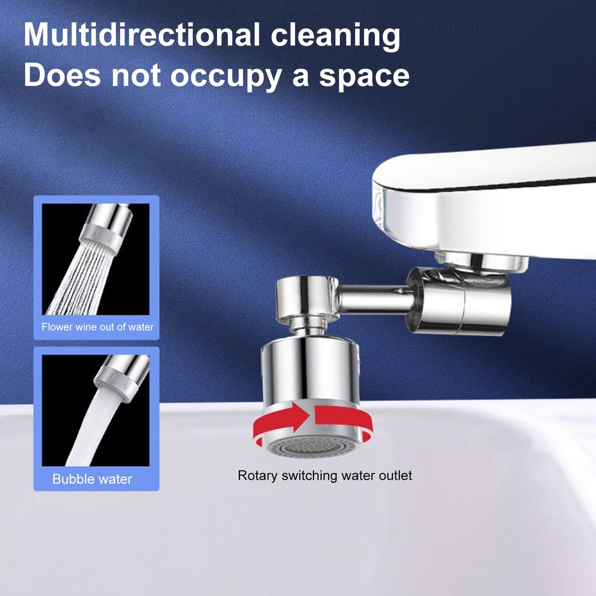 This faucet can rotate 1080 degrees to meet your all-round water needs; and it is splash-proof and can keep your countertop neat and tidy.