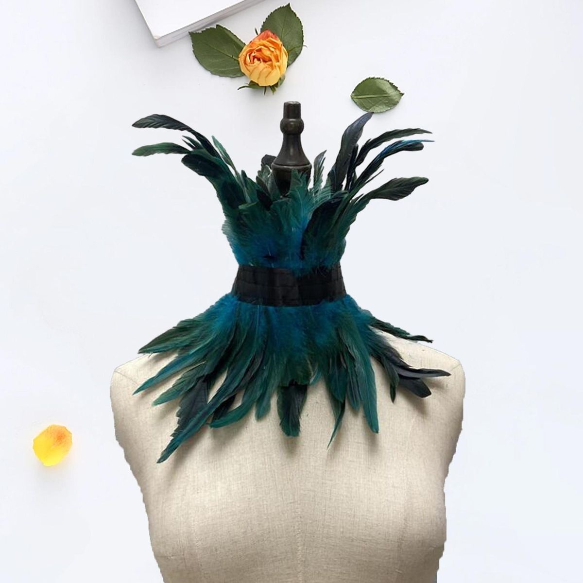 Our exquisite faux feather collar for women, a must-have accessory to elevate your style and make a statement. handmade with care, this solid color feather neckerchief is crafted from high-quality faux feathers, ensuring a cruelty-free and sustainable fashion choice.