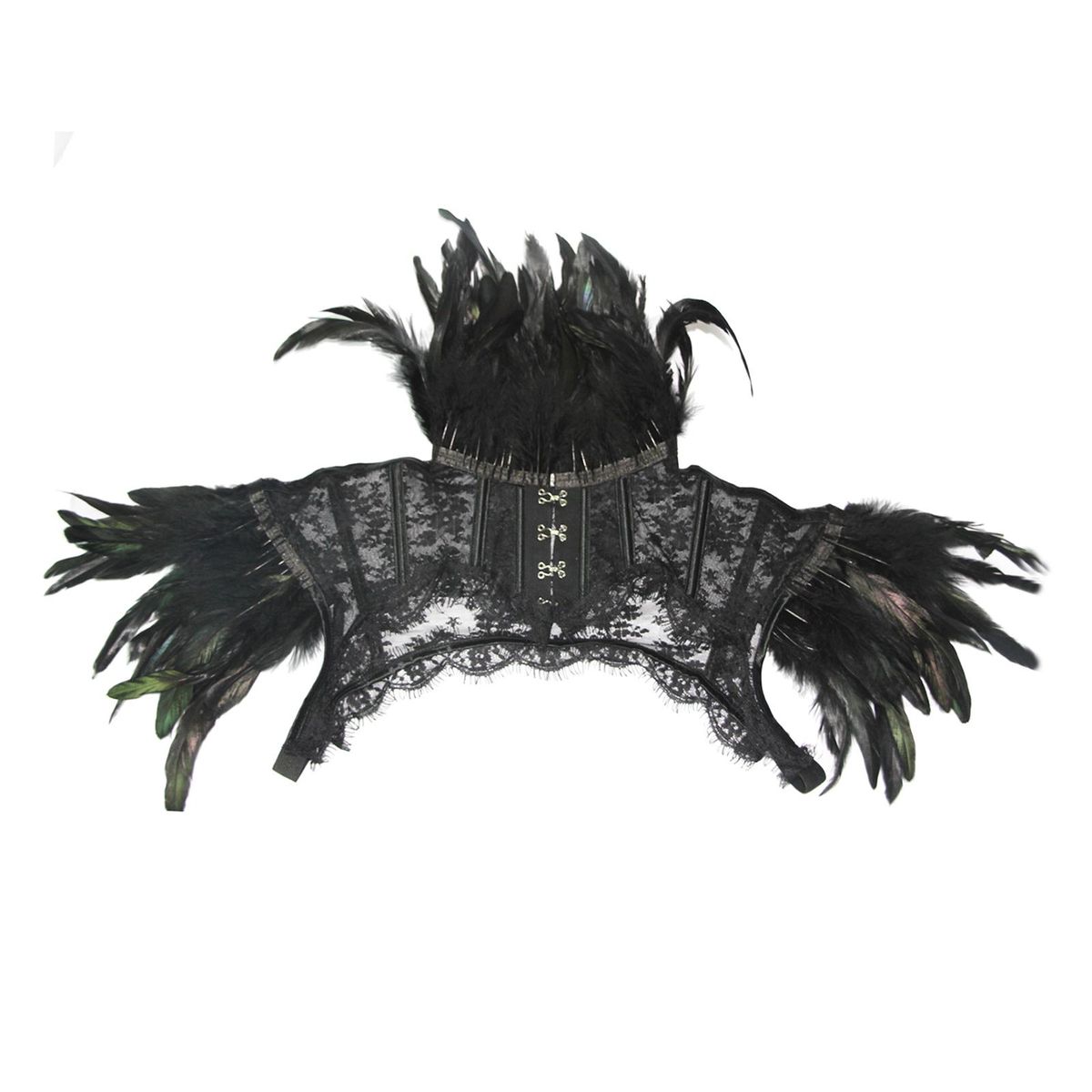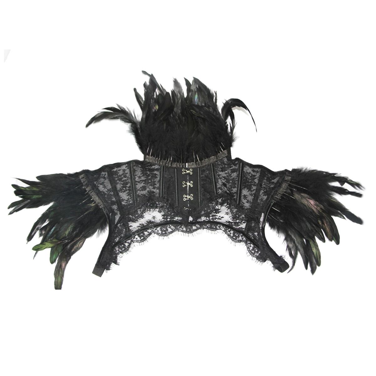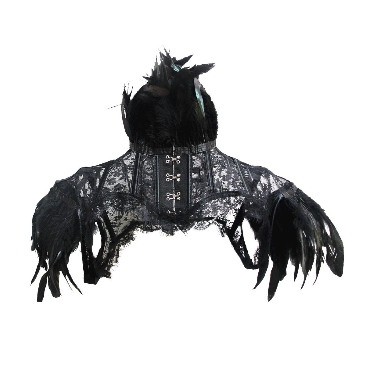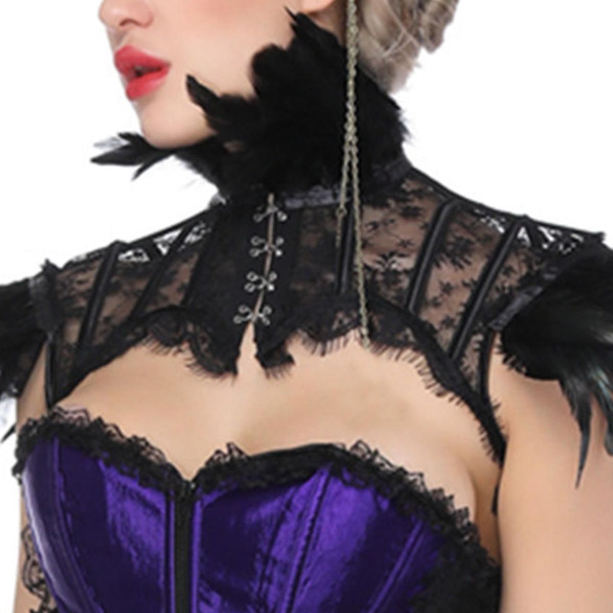Women's gothic natural feather shrug shawl shoulder wrap cape with collar for Halloween costume party.
