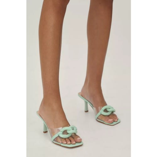 Buy Faux Leather Clear Chain Front Detail Mules - Green in Nigeria