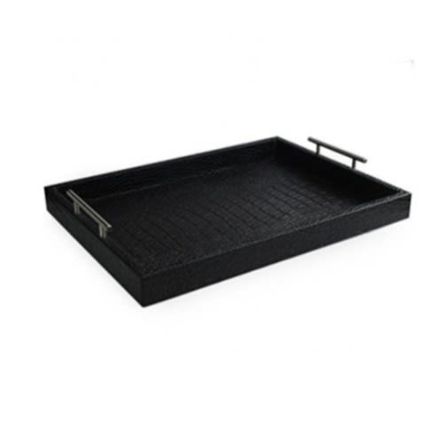 Buy Faux Leather Serving Decorative Tray With Metal Handles - Dark Grey in Nigeria