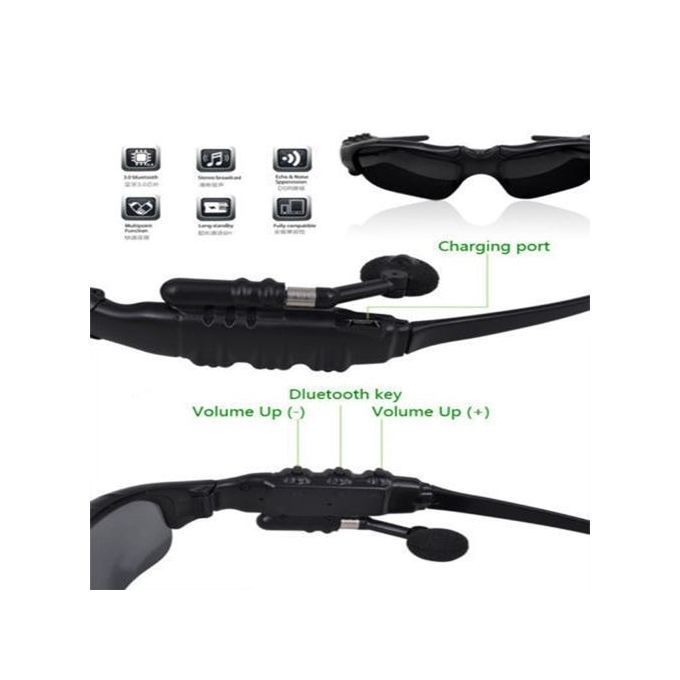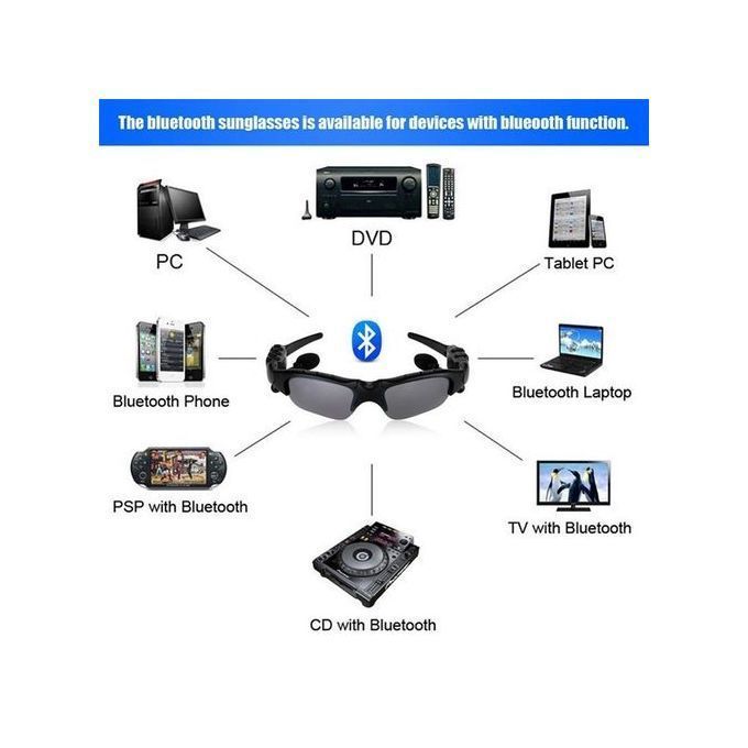 Detailed descriptionStylish appearance, unique design, personality development features.Top grade sunglasses formed the main body.Supported handset and hand free profile.This item is the perfect combination of practicability and fashion.Most fashionable design with foldable eyeglassesMade of polarized lenses, it has the function of anti-rays, no glare and good eye health care.Hi-Fi earphones built directly on to the frame, and can be adjusted 270 degree for comfortable fit.It can works for all Bluetooth mobile phones, you can enjoy hands-free talk with your friends.Telephone talking mode when calling in and out.
