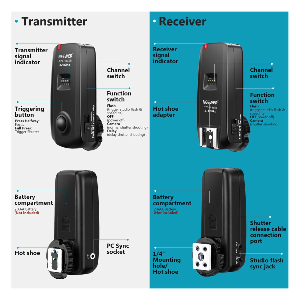 3-in-1 FUNCTIONS REMOTE TRIGGER: (1) It can be used as the wireless synchronous trigger studio strobe flash, such as Neewer N-250W, N-300W, S-400N, Q-600N flash; (2) It can be used as wireless trigger speedlite flash; (3) It can also be used as wireless camera shutter release