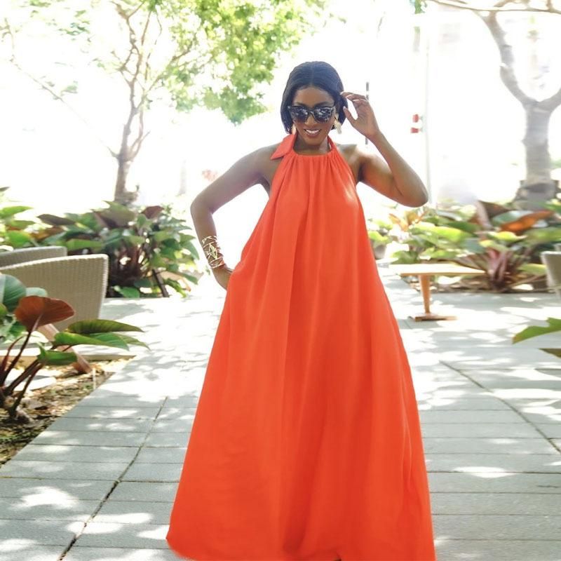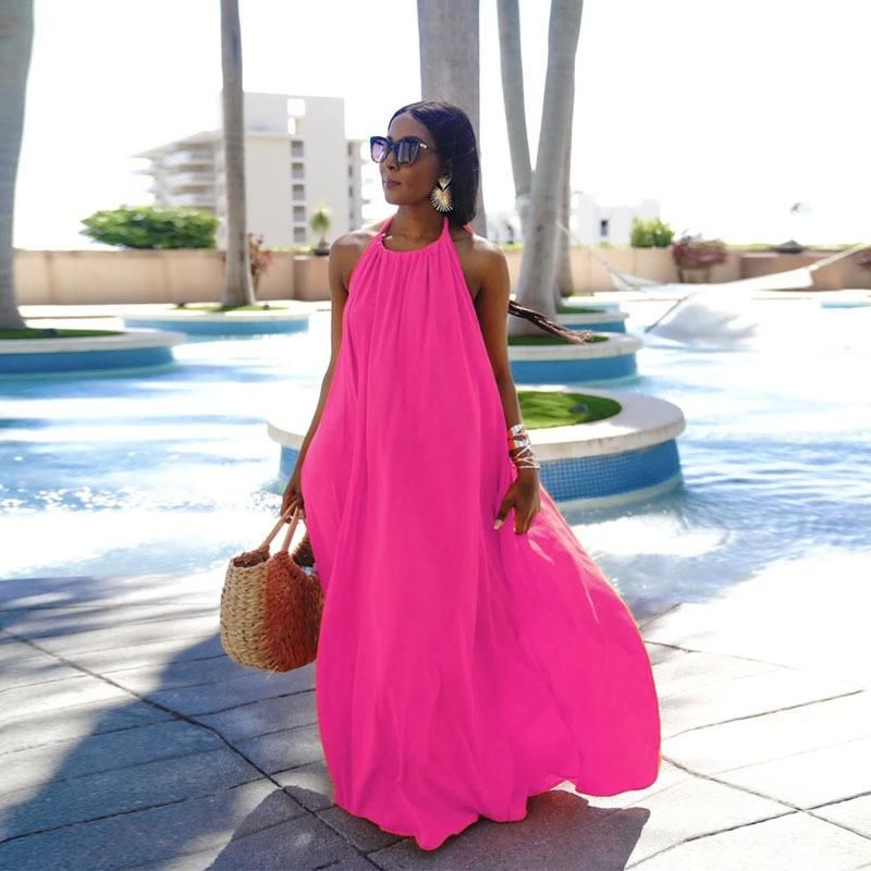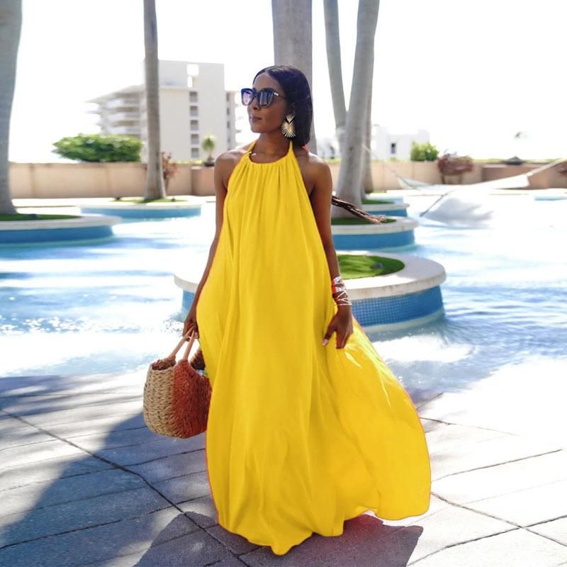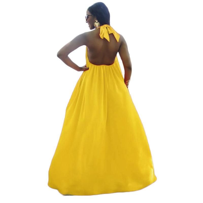 Buy FDY093 2022 Summer New Women's Sleeveless Hanging Neck Sexy Backless Solid Color Dress Long Dress in Nigeria