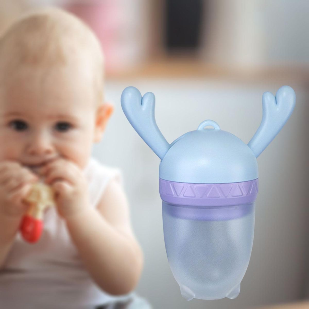 Feeder Design : feeder is the to introduce solids to babies. Silicone with small holes 2mm only allow small, digestible pieces through