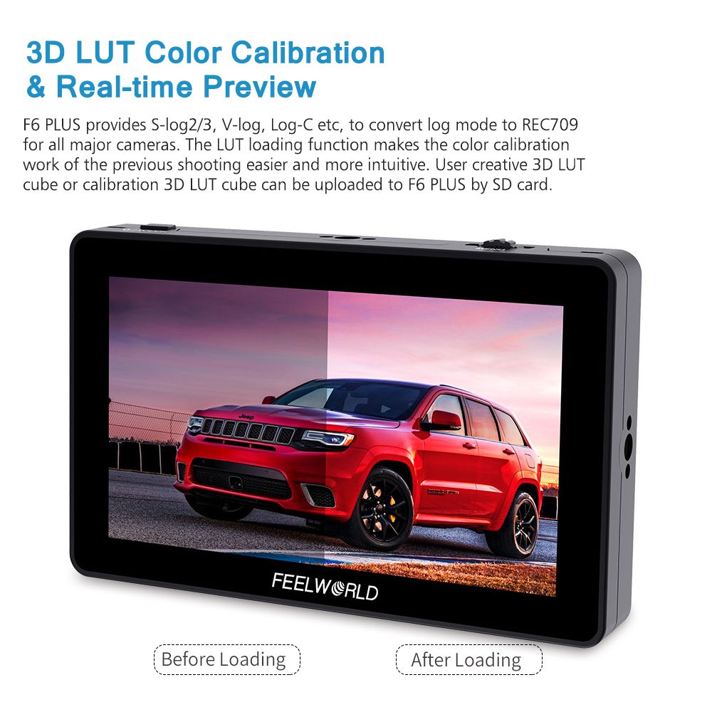 3D LUT Color Calibration & Real-time Preview: F6 PLUS provides S-log2/3, V-log, Log-C etc, to convert log mode to REC709 for all major cameras. The LUT loading function makes the color calibration work of the previous shooting easier and more intuitive. User creative 3D LUT cube or calibration 3D LUT cube can be uploaded to F6 PLUS by SD card.
