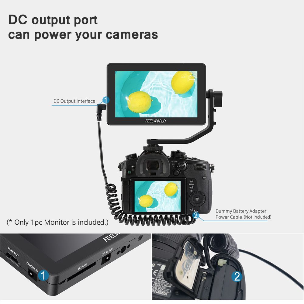 More Functions: With 4K HD input and loop-out port, allowing it to not only display live signals, but also send them out to other monitors simultaneously; 3.5mm stereo headphone jack for monitoring audio; DC output port can your cameras, battery adapter cable is not included.