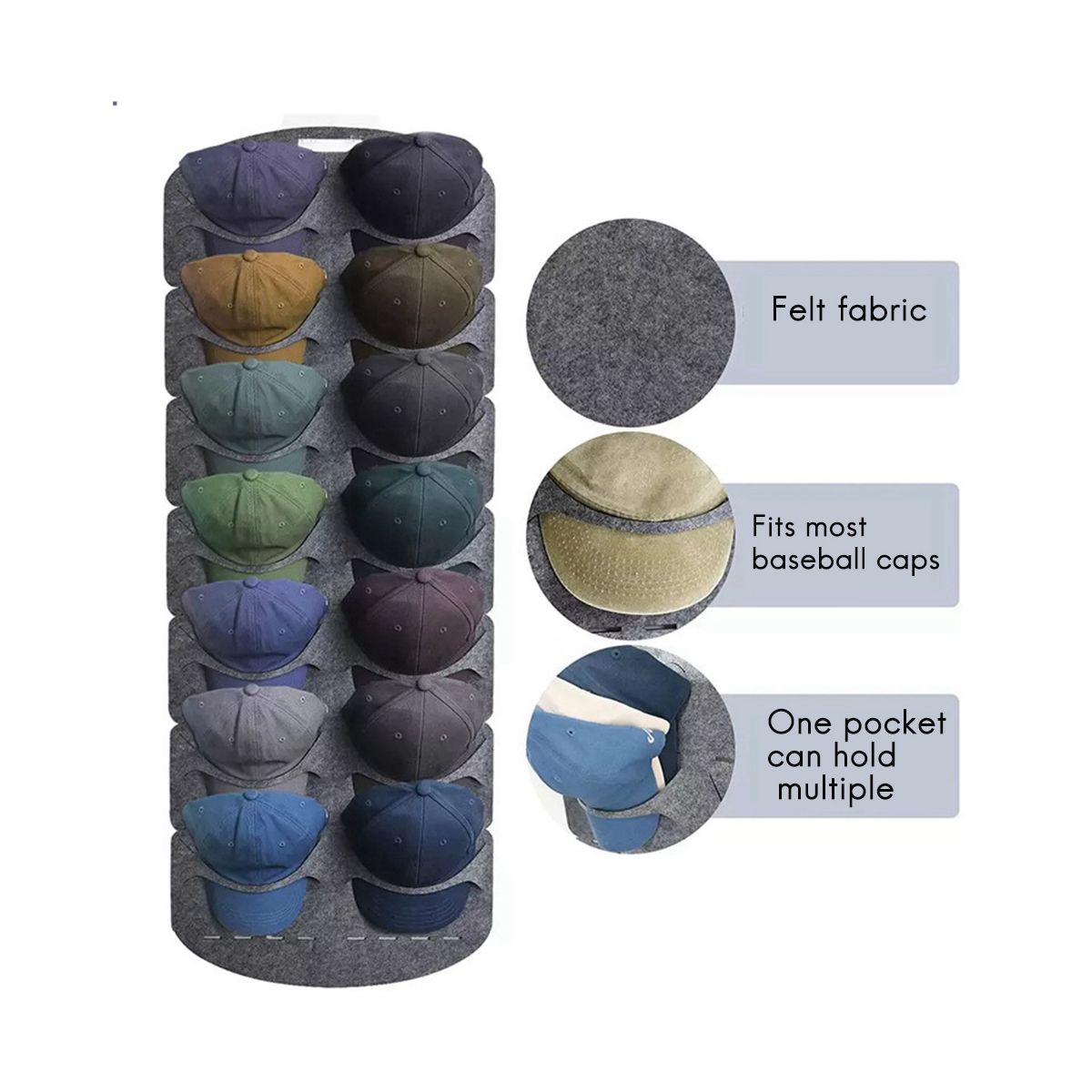 Baseball Hat Rack, Door Hanging Holder Hanger Storage Rack for Baseball , 14 Pocket Over-The-Door Cap Organizer with Clear Deep Pockets to Protect, Store and Display Your Baseball Cap Collection