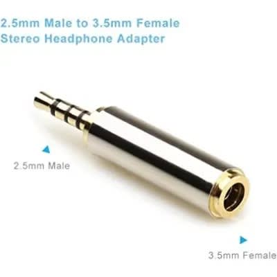 2.5mm Male to 3.5mm Female / 3.5mm Female to 2.5mm Male Stereo Audio Adapter Headset Converter Connector for Smartphones, Headphone, Mic, Tablets Note: It is not compatible for telephone and cameraProduct description Introducing our high-quality Metal 2.5 mm Male to 3.5 mm Female Audio Adapter - the perfect solution for all your audio needs! With its durable metal construction and sleek golden finish, this adapter is designed to provide a seamless connection between your 2.5 mm audio device and your 3.5 mm headphones or speakers. Featuring gold-plated connectors, this adapter ensures excellent conductivity and superior sound quality, making it ideal for use with smartphones, tablets, headphones, microphones, and other audio devices. The adapter's compact size and lightweight design make it easy to carry with you wherever you go, so you'll always have a reliable audio connection on hand. Whether you're listening to music, watching movies, or taking calls, this Metal 2.5 mm Male to 3.5 mm Female Audio Adapter is the perfect accessory for all your audio needs. So why wait? Order yours today and experience the best in audio connectivity!