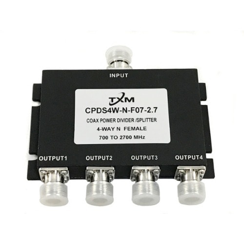 Sends Equal Amounts Of Signal To 4 Antennas For Similarly Sized AreasN-female Connectors698-2700 MHz Full cellular band coverageCompatible with all 50-ohm cell phone boosters, amplifiers, and repeatersVery low insertion loss and VSWRHigh port-to-port isolation50-Ohm N-female connectorsWeather-proof design, suitable for both indoor and outdoor applicationsOther custom connector types available upon request