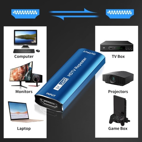 Wide Compatibility: This HDMI extender support HDMI signals from devices such as TV Box, TV stick, Xbox 360, Xbox One, PS5, PS4, PS3, Blu-Ray Player, PC, Laptop for HDTV, Monitor, Projector and more