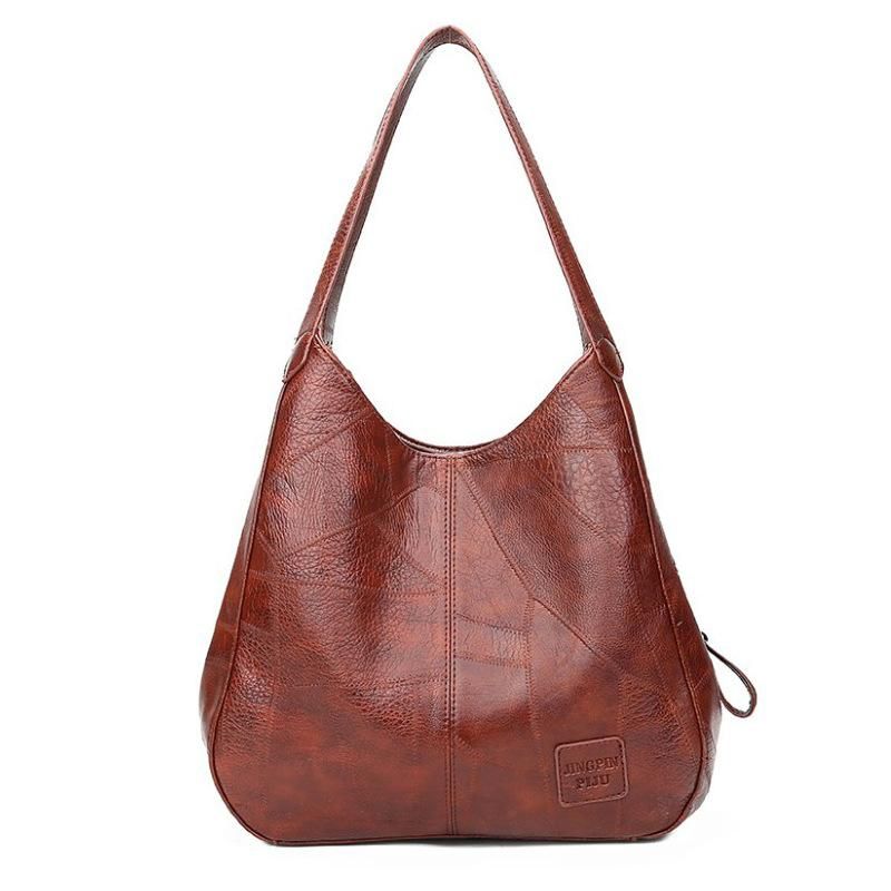 Buy female bags 2021 retro soft leather shoulder tote bag tote bag stitching multi-compartment women's bag style one brown in Nigeria