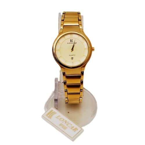 Loncar dual tonne female watch, full stainless steel dual tonne strap from loncar powered by japan quartz movement,Feature date display on a black dial. Its comfortable stainless steel bracelet, calming Black dial, spectacular 50m water resistance capability and precise, this particular timepiece a must-have for every woman.