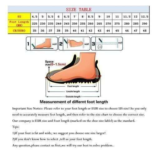 Size chart--- Men Size (38-48) ---Women Size(35-42)