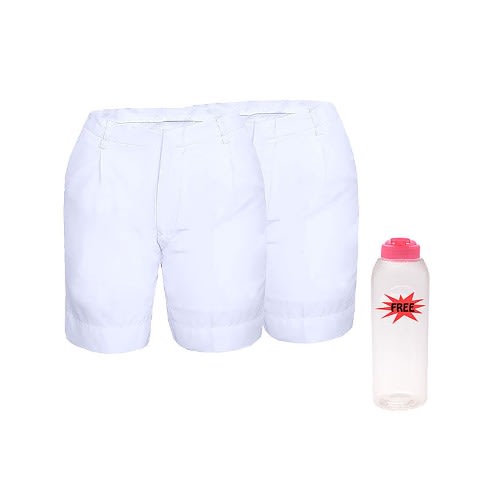 This is a set of 2 plain white shorts that are tailor fitted and designed for outdoor wearing, sporting activities, and indoor wear too. They are made from a fine material that has a tiny bit of elasticity. The shorts are pure white with a white zipper and a transparent button to button up at the waist.