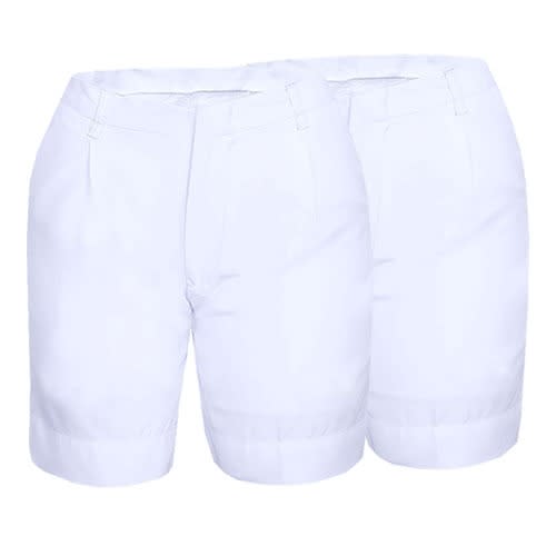 This is a set of 2 plain white shorts that are tailor fitted and designed for outdoor wearing, sporting activities, and indoor wear too. They are made from a fine material that has a tiny bit of elasticity. The shorts are pure white with a white zipper and a transparent button to button up at the waist.