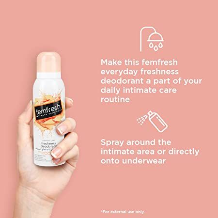 - LONG-LASTING FRESHNESS: Say hello to our intimate feminine hygiene deo. Feel confident all day with just one de-odourising spray. Femfresh gives you 12-hour odour protection
