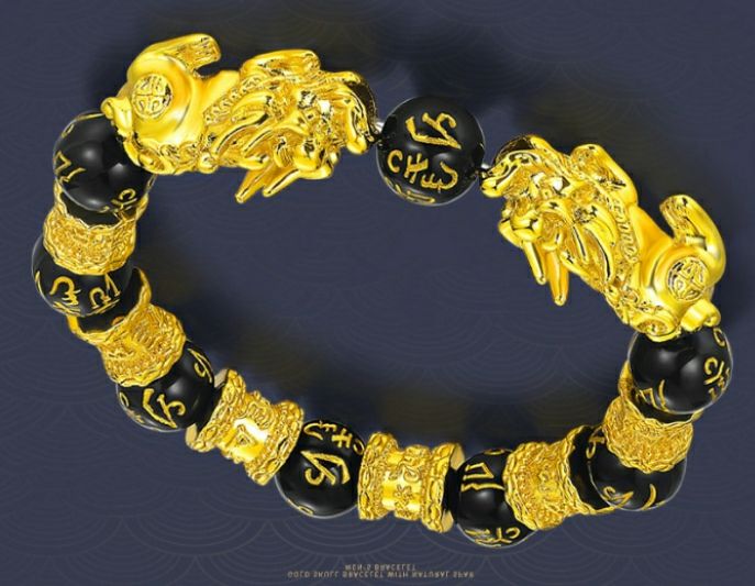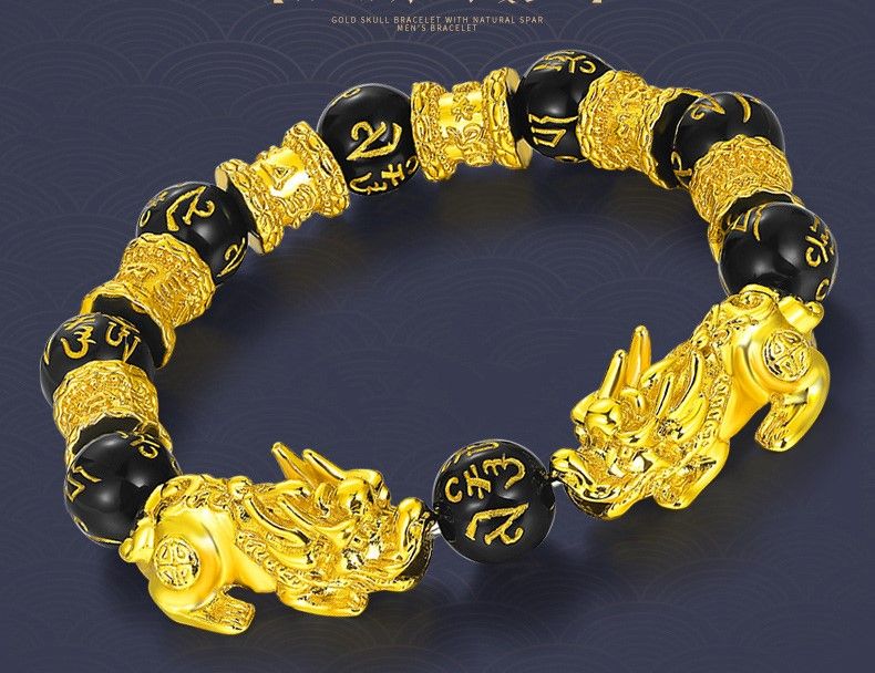 Feng Shui Gold Skull Obsidian Wealth Bracelet - BlackThis feng shui bracelet combines the powerful Pixiu and black obsidian. Invite wealth luck into your life with the