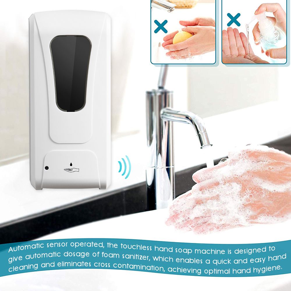 Automatic sensor operated, the touchless hand soap machine is designed to give automatic dosage of sanitizer, which enables a quick and easy hand cleaning and eliminates cross contamination, achieving optimal hand hygiene. It is powered by 4 pack of C batteries or a DC adaptor (Note: batteries and adaptor are not included in this product), a reliable device with a long service life.