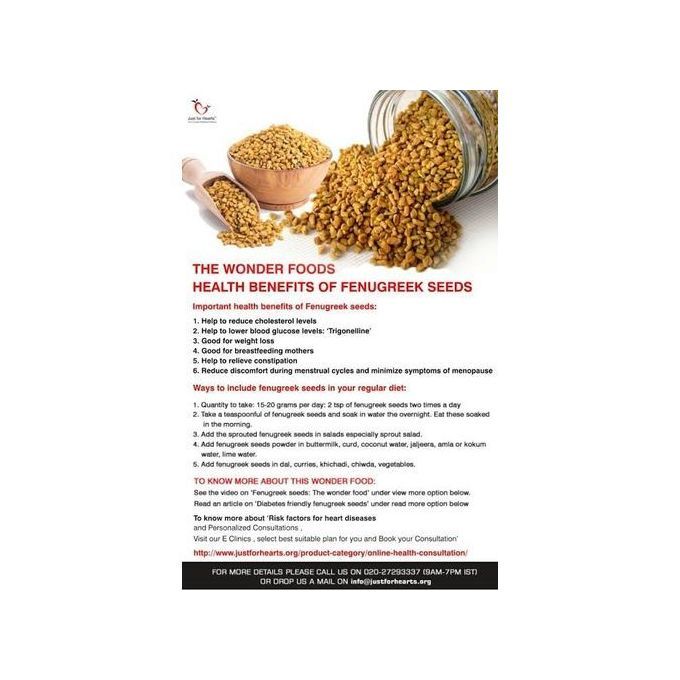 - Anti-Aging : Fenugreek seeds can reduce signs of aging like wrinkles and fine lines. Soak one tablespoon of TRS Fenugreek seeds overnight and blend the soaked Fenugreek seeds with one tablespoon of yogurt till a smooth paste is formed. Apply this paste on your face, leave for about 30 minutes and then rinse with water. Fenugreek seeds show a significant amount of antioxidant activity and fight the free radicals that accelerate the process of aging and yogurt has lactic acid that gently exfoliates your skin leaving your skin smoother and softer.