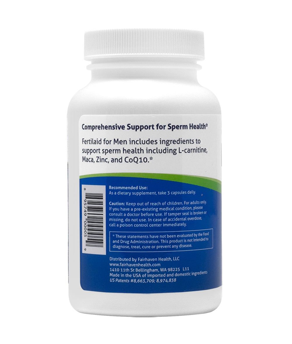 FertilAid for Men Fills Your Diet Gaps and Supports Sperm with a Potent Mix of Vitamins, Specialty Nutrients and Herbs*Since 2003, FertilAid for Men has been blazing the trail in the world of fertility supplements. FertilAid for Men was the first supplement to support male fertility on two fronts by combining key fertility herbs and antioxidants - including Maca, Zinc, CoQ10, and L-carnitine tartrate - along with a comprehensive male prenatal multivitamin. Two decades after hitting the market, FertilAid for Men continues to set a high bar for natural support for male fertility and reproductive health.Clinically Studied To Support the Number of Total Motile SpermMale fertility is in part a numbers game - the more sperm you have, the better the chances that one of those will be vital enough to fertilize the egg. Motility and morphology are also key factors - that is, sperm have to swim fast and be of the right shape in order to reach and penetrate the egg.