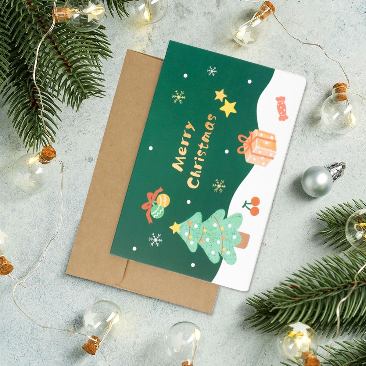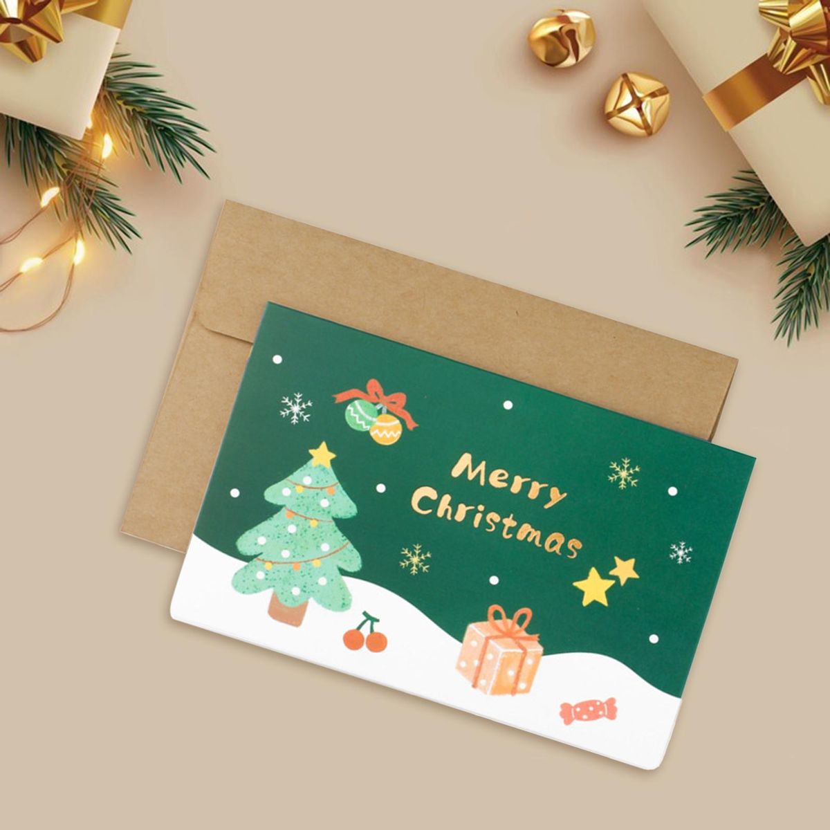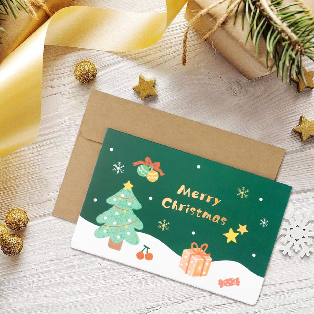 The christmas element design creates a strong festive atmosphere, making it the ideal choice for adding a touch of holiday spirit to any occasion. whether you're celebrating with family or friends, this card will surely bring smiles and joy to everyone's faces. each card is collapsible and comes with matching envelopes, making it convenient to send your heartfelt wishes to friends and family near or far.