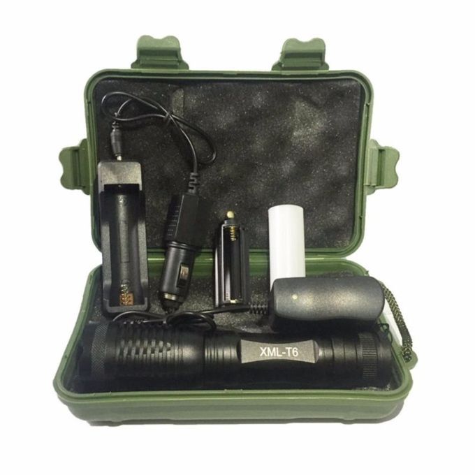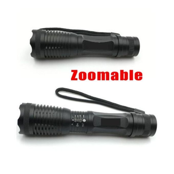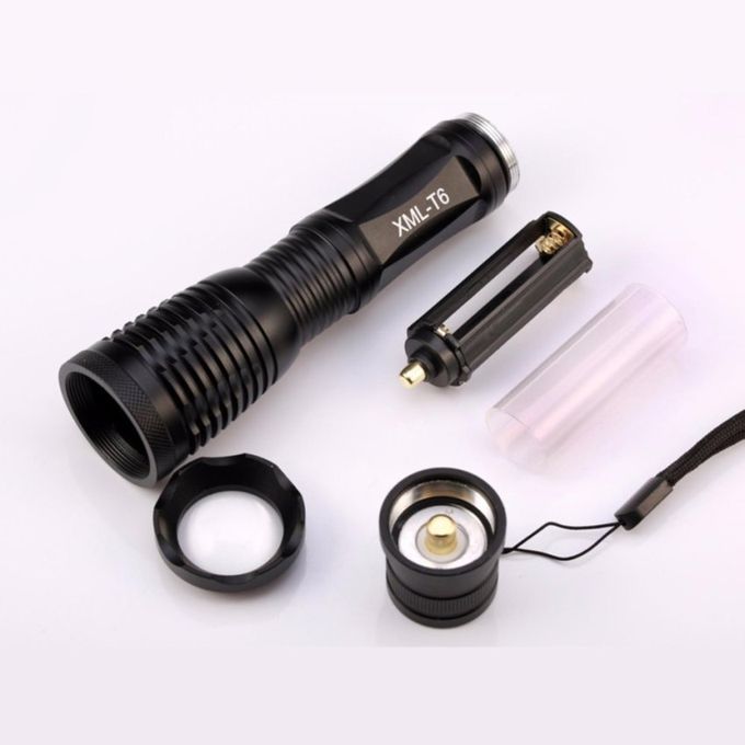 Item Type:FlashlightsLumen:2000Body Material:AluminumLight Source:LED BulbsZoom:YesWattage:10Power Source: 1x18650 Li-ion (not included) or 3x AAA Li-ion(notincluded)Waterproof:YesColor:BlackLighting Distance:200-500 mSwitch Mode:High/Middle/LowSupport Dimmer:5-8 filesFunction:Shock ResistantBody Color:BlackModel of LED Beads:T6Focal Length:AdjustableFlashlight Type:Camp About LED FlashlightThis High QualityWater-Resistant 4000LM Led flashlight/Torchwith Dimmer, through adjusting the telescoping head,you canget spot beam and flood beamas you need. Ideal for cavers,forest explorers, hunter, fisher etcFeatures:-Five modeswith one button : high light, middle light, lowlight, strobe andSOS lightfor your choice.-Using XM-L T6 lamps, Max brightness 4000LM,Irradiation distance>500m- Internal wiring applies constant current output, working rangeis wide, and can utilize the batteries in the largest extent.- Zoom in & Zoom out-Aluminum alloy casingand skid-proof design, feel morecomfortable- Widely used in outdoor activities such as mountain climbing,camping, hiking, forest exploring, Or used at home like repairingor finding small thing.