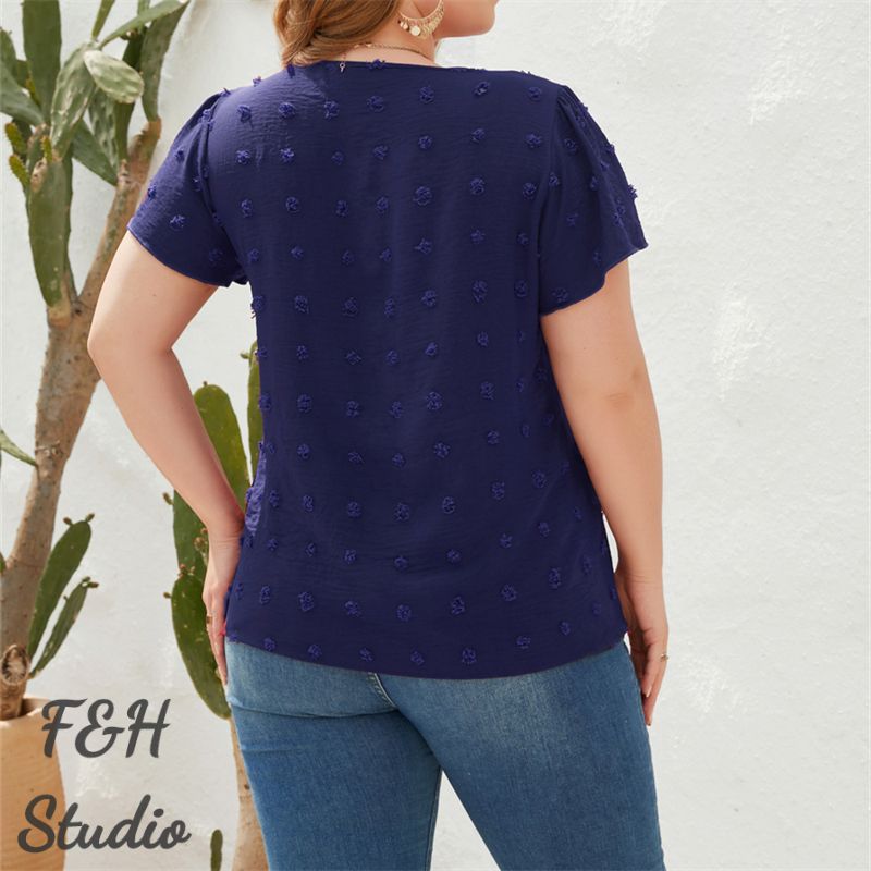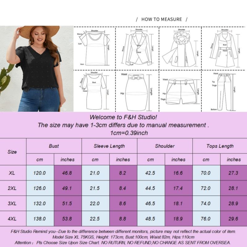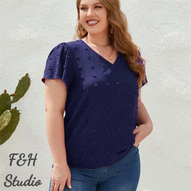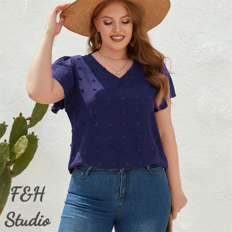 Color: Navy Blue Size: XL, 2XL, 3XL,4XL Model Size FYR: Model wear size XL ❤This is a v neck short sleeve big size tops plus size blouse !!❤Style:V Neck Short Sleeve Plus Size Blouse Big Size Tops. Please note that slight color difference should be acceptable due to the light and screen.What You Get:1 x Blouse. FQA:1. Q: Why the item haven't shipped out? A: After you place the order, We will ship the item to the rehmie warehouse within 48 hours as soon as possible, and then rehmie warehouse will send the item to you. If you find the logistics status is"to be shipped", it may be because the rehmie warehouse has not yet been shipped. Please don't worry. 2. Q: How can I choose the size? A:Please refer to the size chart and select the appropriate size according to your actual size.If you are not sure what size to choose, please call me. 3. Pls take note that all the clothes can not be returned or exchanged.4. All dimensions are measured by hand, there will be 2-3cm reasonable deviations. (1cm=0.39 inches). Pictures are only samples for reference. Due to the differences in monitor settings, the colors shown in the photograph may not correspond 100% to those in the items themselves. 5.For transportation needs, the cloth that you've received will have a fold phenomenon. Please don't worry, this fold situation will disappear after the first time you clear or ironing.