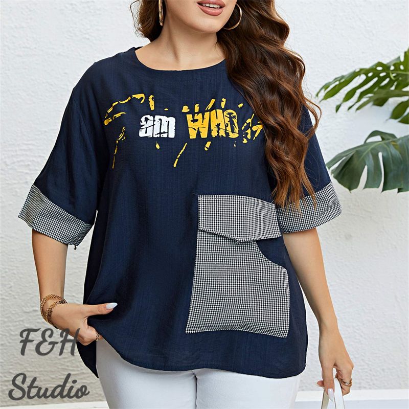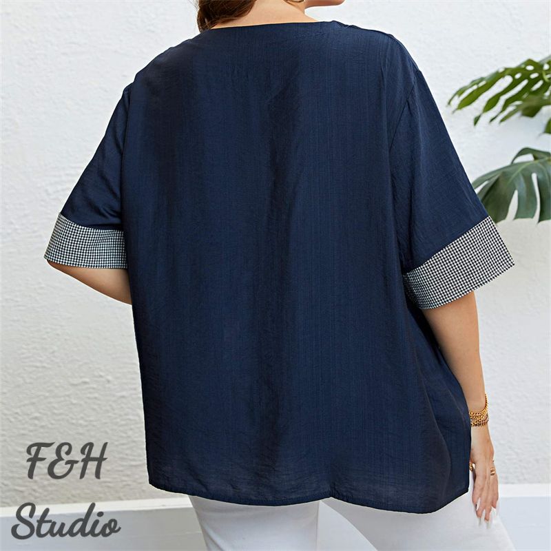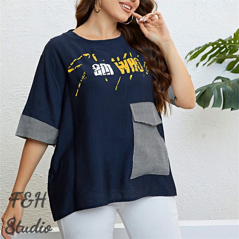 Color: Blue Size: XL, 2XL, 3XL Model Size FYR: Model wear size XL ❤This is a round neck short sleeve big size tops plus size blouse !!❤Style:Round Neck Short Sleeve Plus Size Blouse Big Size Tops. Please note that slight color difference should be acceptable due to the light and screen.What You Get:1 x Blouse. FQA:1. Q: Why the item haven't shipped out? A: After you place the order, We will ship the item to the rehmie warehouse within 48 hours as soon as possible, and then rehmie warehouse will send the item to you. If you find the logistics status is"to be shipped", it may be because the rehmie warehouse has not yet been shipped. Please don't worry. 2. Q: How can I choose the size? A:Please refer to the size chart and select the appropriate size according to your actual size.If you are not sure what size to choose, please call me. 3. Pls take note that all the clothes can not be returned or exchanged.4. All dimensions are measured by hand, there will be 2-3cm reasonable deviations. (1cm=0.39 inches). Pictures are only samples for reference. Due to the differences in monitor settings, the colors shown in the photograph may not correspond 100% to those in the items themselves. 5.For transportation needs, the cloth that you've received will have a fold phenomenon. Please don't worry, this fold situation will disappear after the first time you clear or ironing.