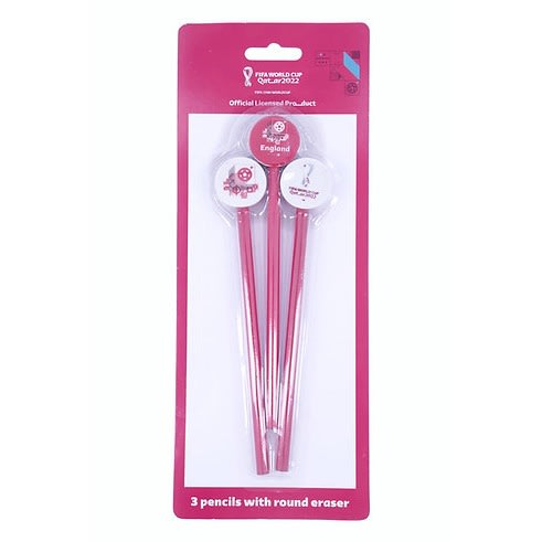 FIFA World Cup Pencil With Erasers Toppers 3-pack - Red & White