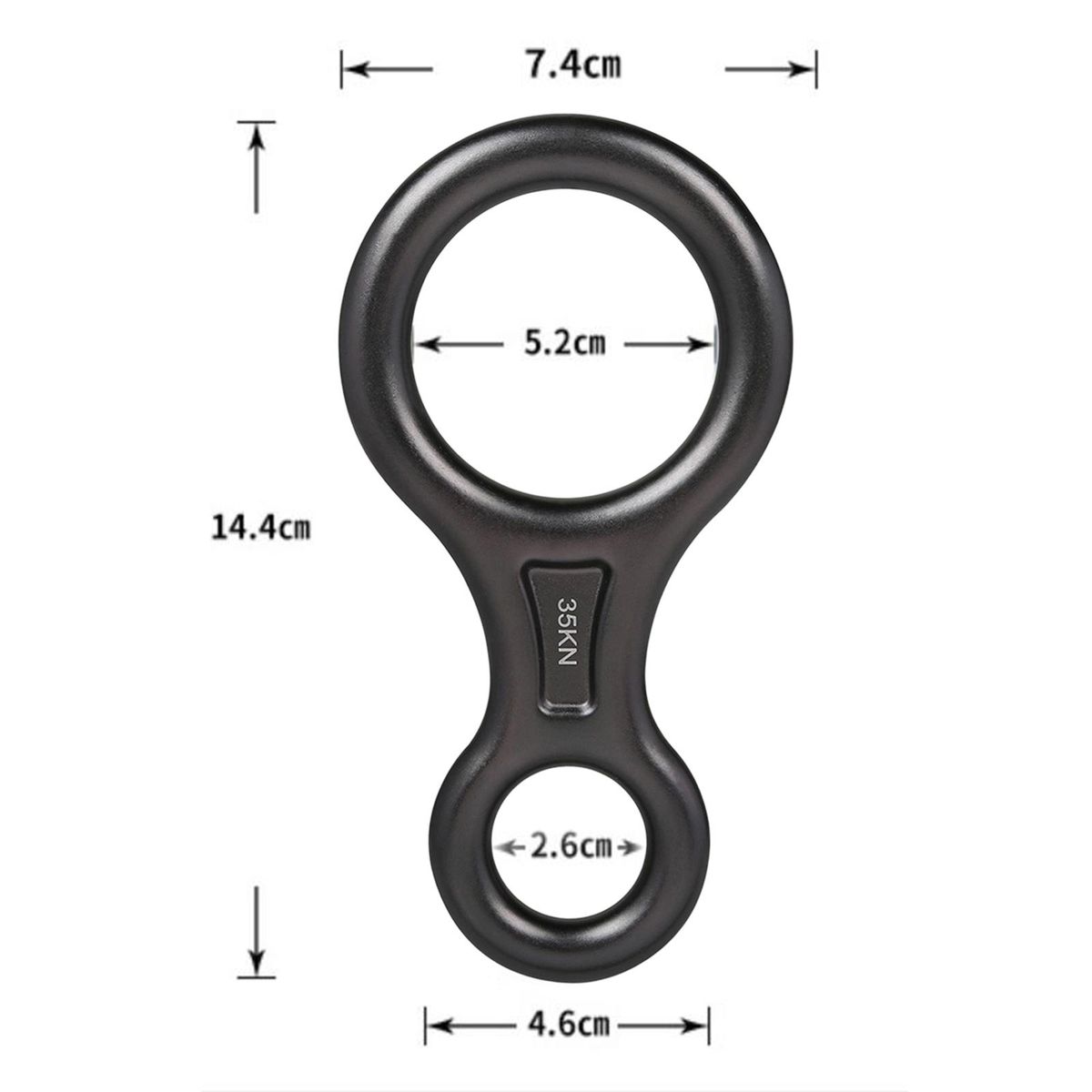 Figure 8 rappel descender. Pulling force: 35KN (about 3500 kg).Fit for 8-13mm rope in diameter.Offers a smooth rappel with minimal impact on the rope.Lightweight, durable and strong.Great for rappelling, downhill, rock climbing, mountaineering, caving, work, construction, etc.