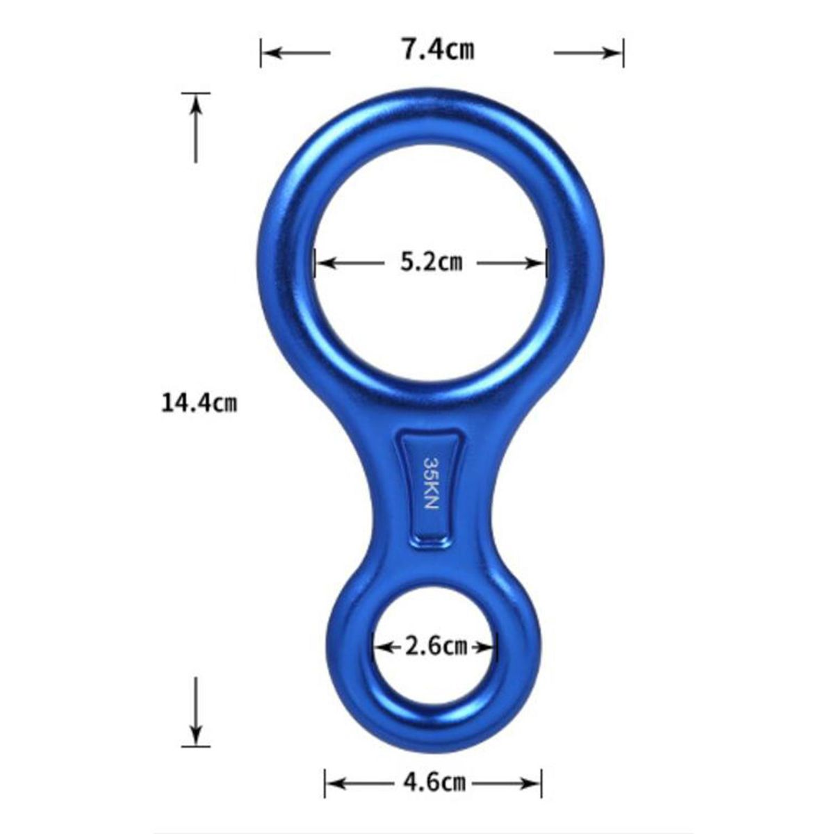 Figure 8 rappel descender. Pulling force: 35KN (about 3500 kg).Fit for 8-13mm rope in diameter.Offers a smooth rappel with minimal impact on the rope.Lightweight, durable and strong.Great for rappelling, downhill, rock climbing, mountaineering, caving, work, construction, etc.