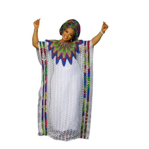DRESS TOMIKE KAFTANA woman's got to reward herself every now and then for all the plenty work she always puts in, and Dress TOMIKE is the best option.It is an original Fully stoned Dry Lace and Ankara combo designed by FunmyClothing for you.A very bright and beautiful dress, that speaks elegance and Class. This kaftan comes with an Inner and Head-tie.