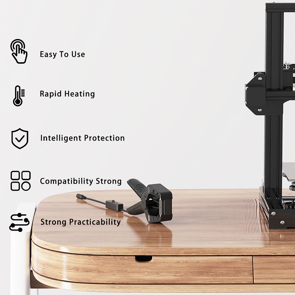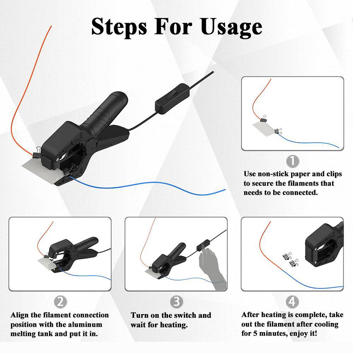 Intelligent Protection - When the filament connector continues to heat for 5 minutes, it will automatically off to avoid overheating accidents.