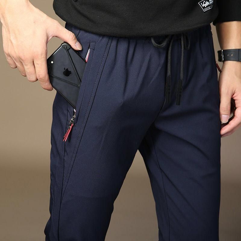 Pantalones de verano finos con bolsillo y cremallera para hombre Pantalon deportivo informal transpirable para oficina y negocios