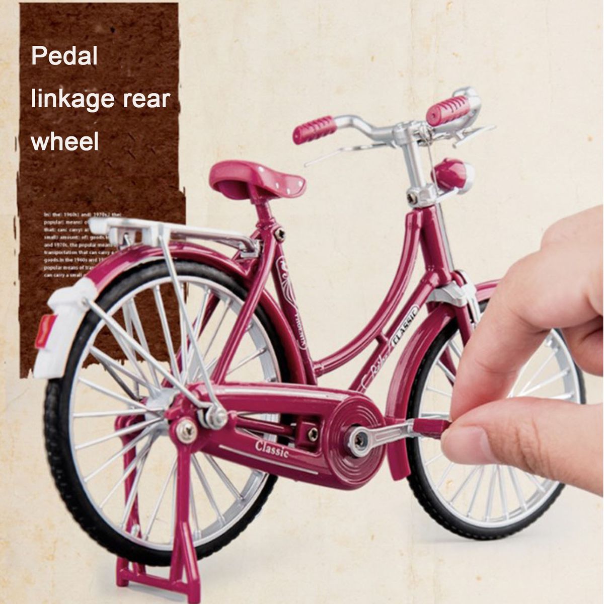 Description: Finger bike toys can be placed on the desk to increase concentration and relaxation. Ideal for bicycle lovers and collectors. Can be given to friends or family to use as desk, table, or shelf decor. Specifications: Name: Finger Bikes Material: Metal/Rubber Casting Ratio: 1:10 Size: 18*11cm Colors: Black, Red Function: The wheels can move / the steering wheel can be linked to the front wheels / the pedals can be linked to the rear wheels Package List: Mini Finger Bike *1