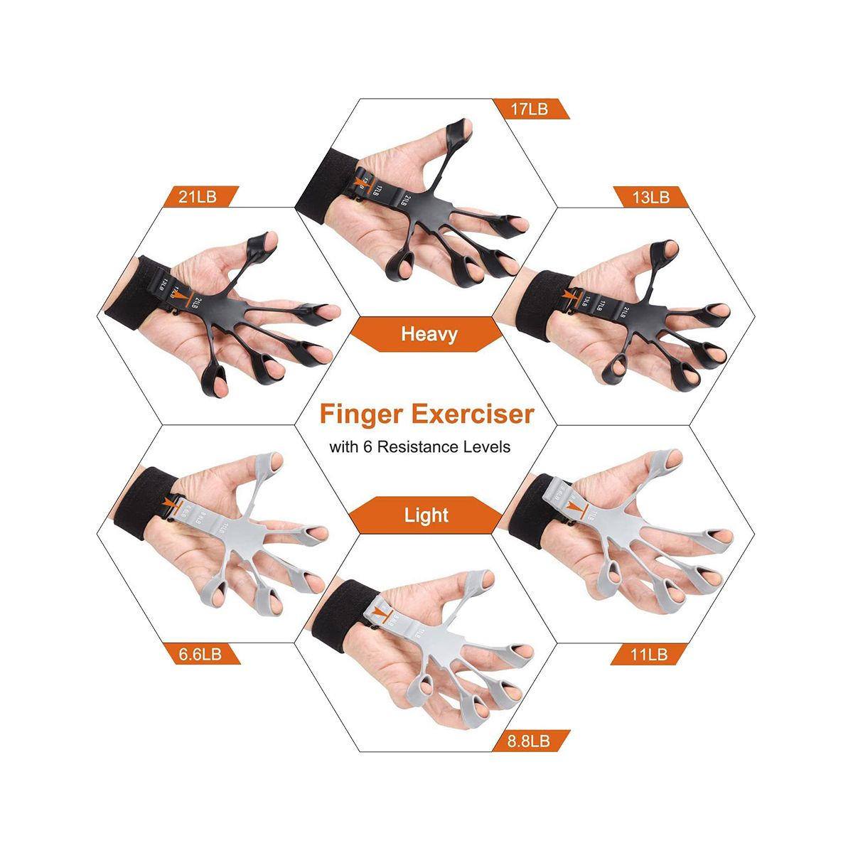 the silicone grip strength trainers you with 6 levels of resistance bands, you can the right levels for your own grip strength, or you can your grip strength by gradually increasing the resistance levels, suitable for different phases of your finger exercise